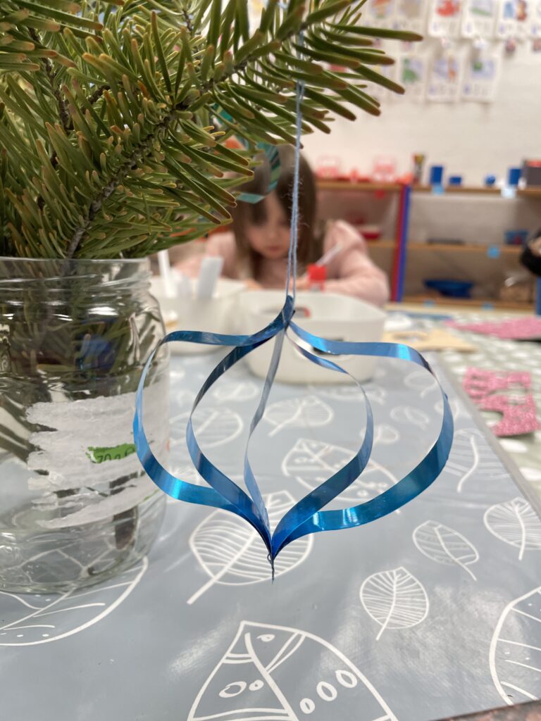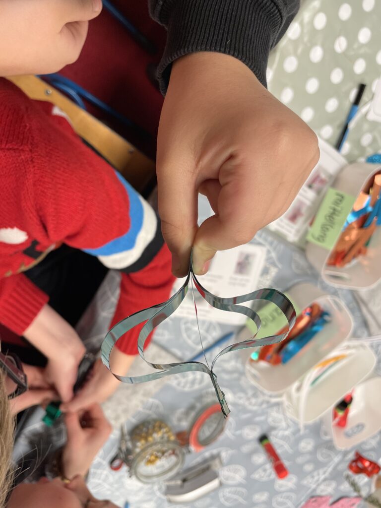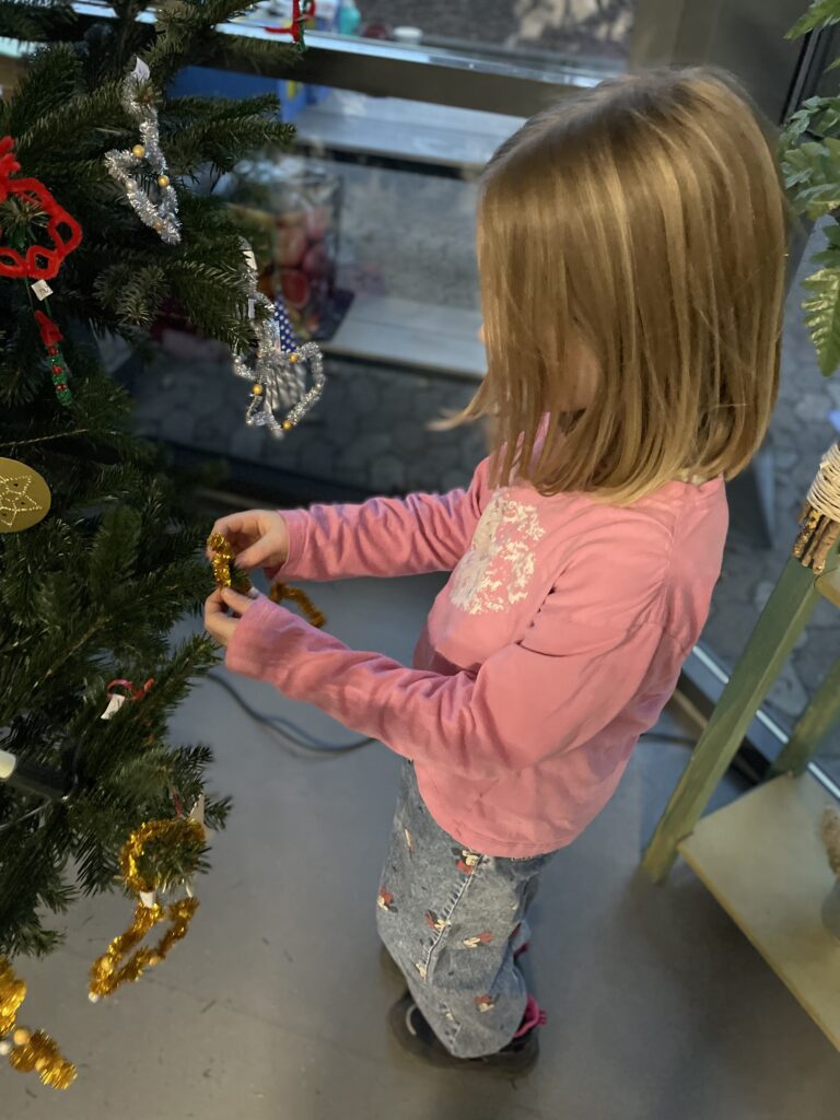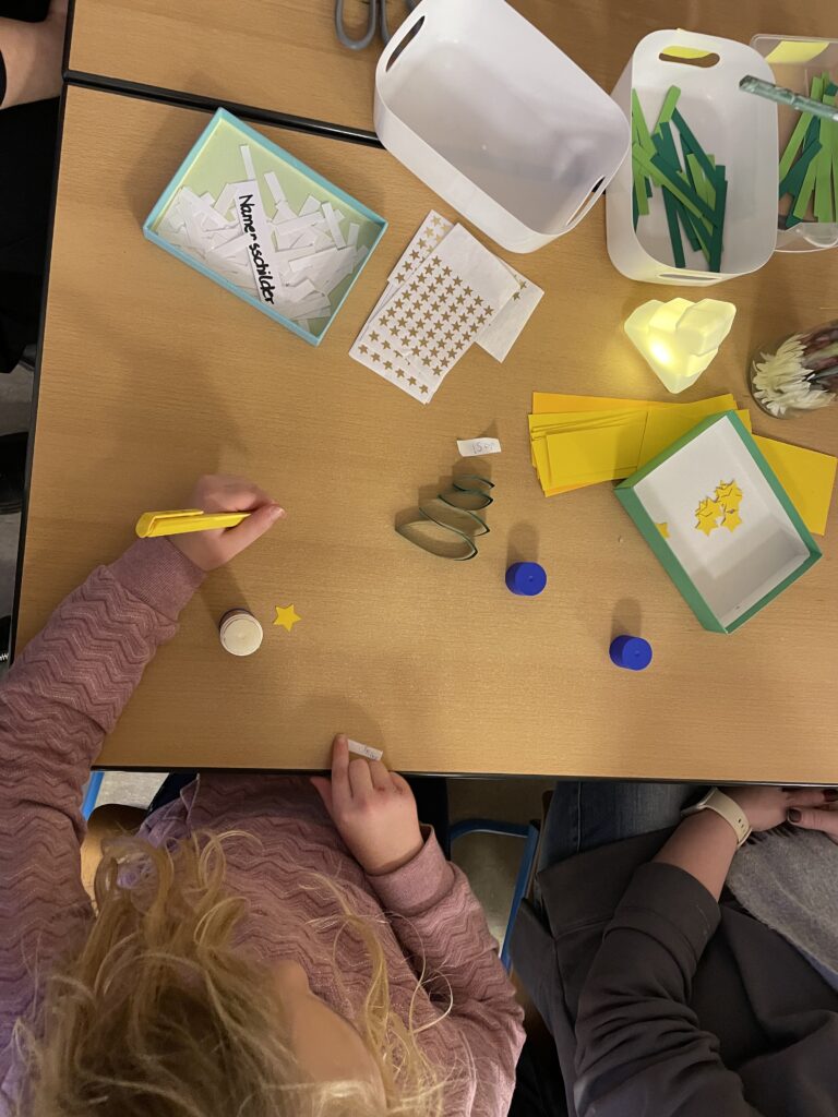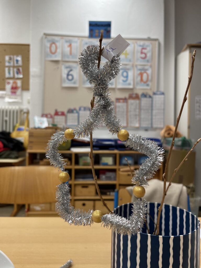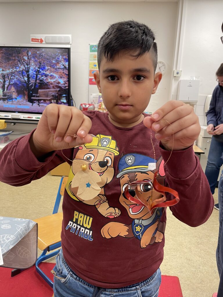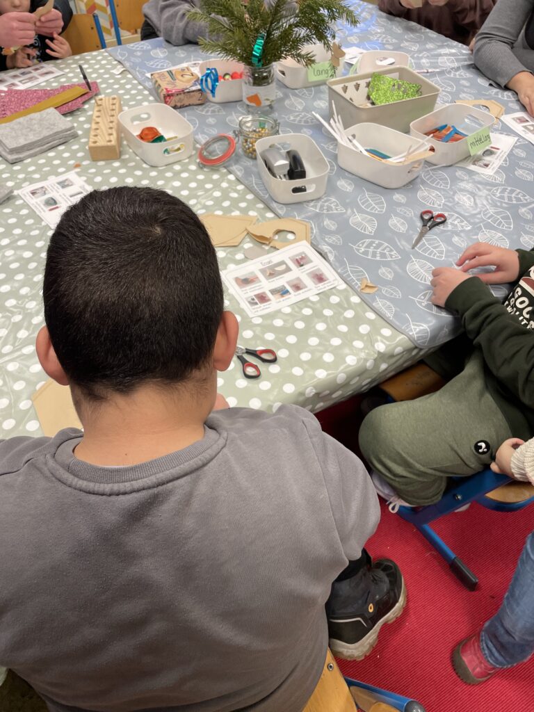 In den Klassenräumen wurde fleißig gebastelt. Die Kinder gestalteten gemeinsam mit ihren Eltern kreative Weihnachtsanhänger, die anschließend unseren großen Tannenbaum in der Eingangshalle schmückten. Dieser wurde im Laufe des Nachmittags immer bunter und festlicher.