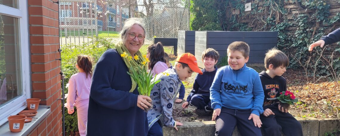 Frühblüher Nachdem sich die Klasse 1b fächerübergreifend mit Frühblühern beschäftigt hat, wurden am letzten Tag vor den Osterferien Perlhyazinthen, Osterglocken …