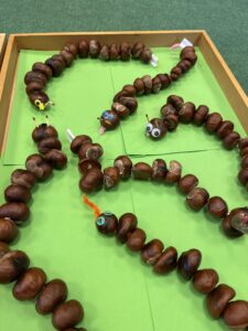 Kastanientiere Auf dem Schulhof haben die Kinder fleißig Kastanien gesammelt,...